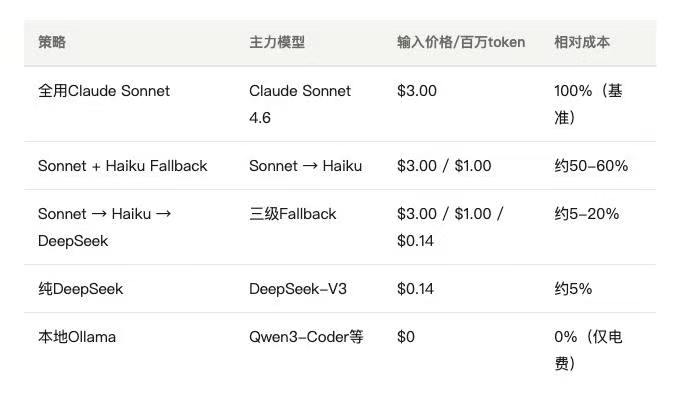 陈博最初全程使用Claude Sonnet,两个月后一算账,发现近一半的简单任务用更便宜的DeepSeek就足够了,开始分层之后账单立减一半。