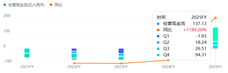 经营现金流同样扎实。2025年,公司经营活动产生的现金流量净额达137.13亿元,而2024年与2023年分别为净流出12.59亿元和77.93亿元。