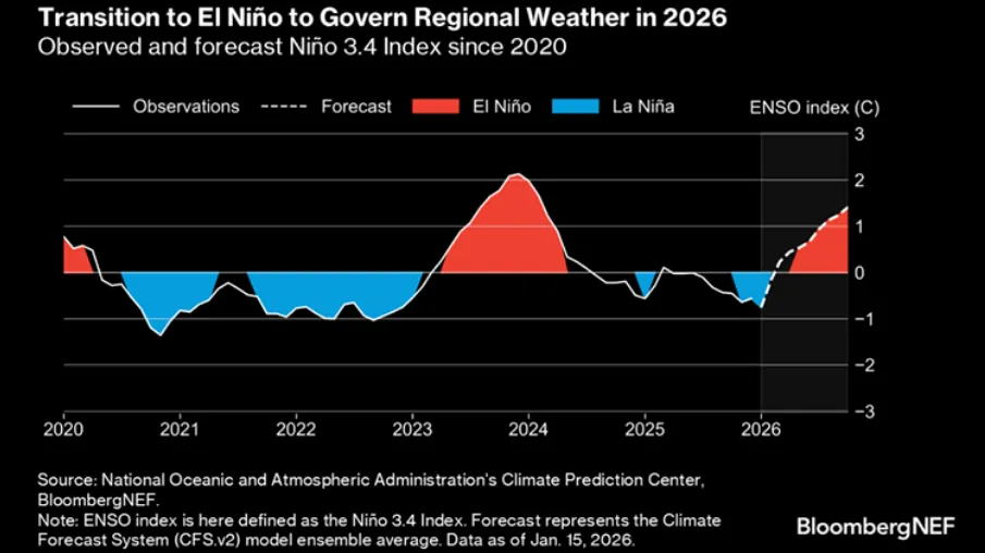 回到当下,2026年发生中等强度厄尔尼诺的概率较高,但“超强”断言尚缺依据。当前市场“弱现实强化”,现货承压,但边际改善信号已现。