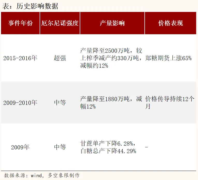 再次是时间节奏。厄尔尼诺若在5至6月形成,主要影响的是2026/27榨季的甘蔗种植和生长,而非当前正在进行的2025/26榨季。这意味着,从预期形成到实际减产兑现,存在明显的滞后性。