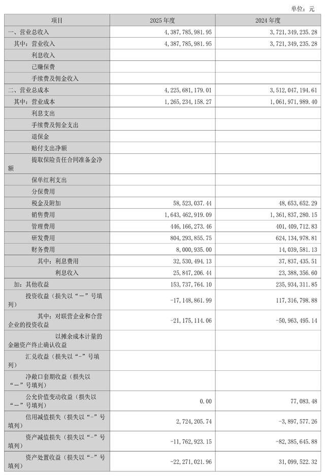 2025年年报数据显示,公司全年实现营业收入43.88亿元,同比增长17.91%,但归母净利润仅为2.60亿元,同比大幅下降34.36%;扣除非经常性损益后的净利润为1.67亿元,同比增长26.33%。