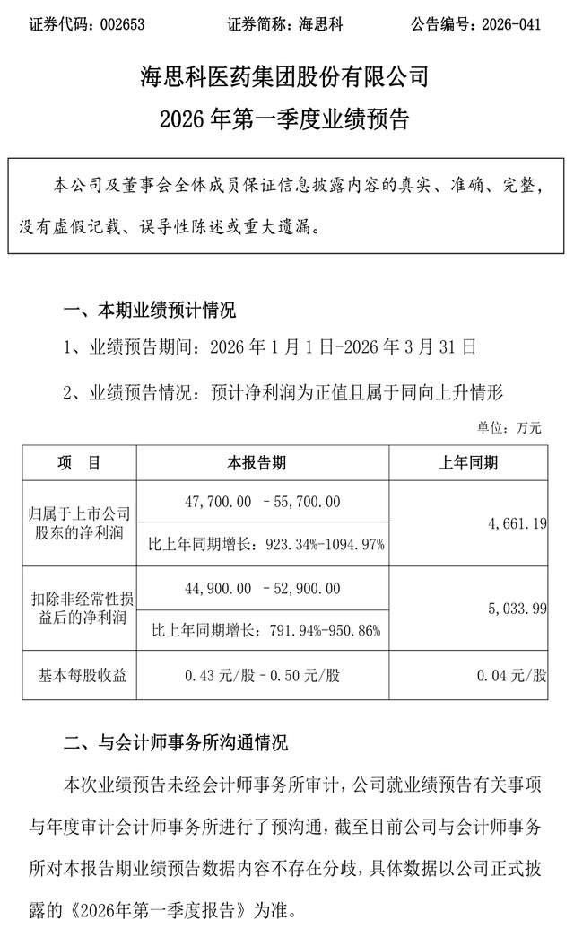 4月12日晚间,海思科(002653.SZ)连发多份公告,交出了一份极具“反差感”的成绩单。