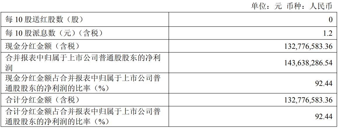 年报显示,恒顺拟每10股派发现金红利1.2元,合计分红1.33亿元,股利支付率高达92.44%。