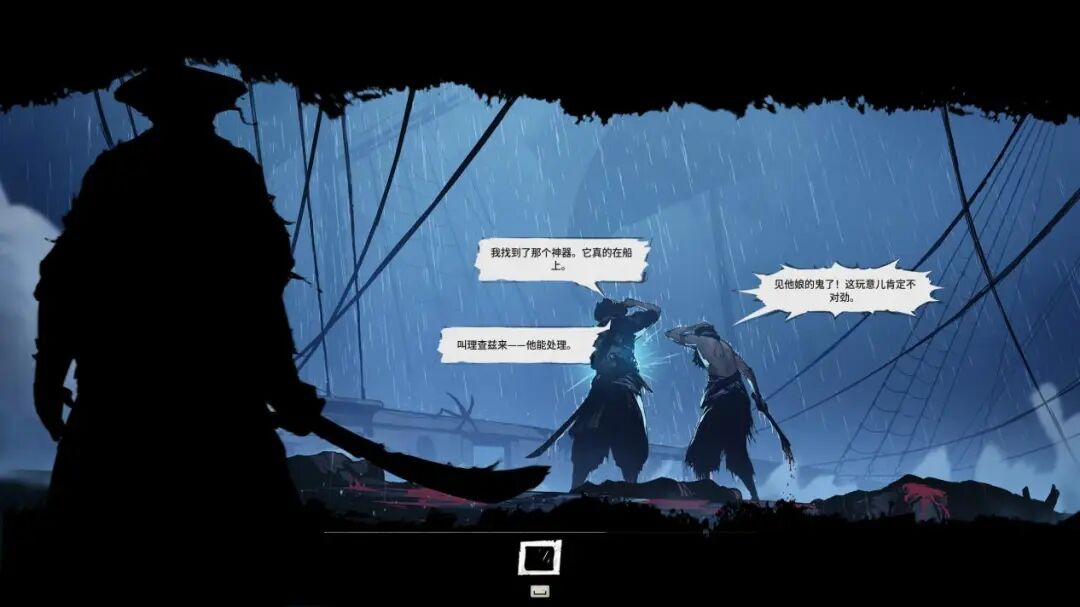 游戏一开场就以漫画PPT的形式(真PPT,还能前后翻页)交代了故事背景,你是一名敢于向黑胡子挑战的无畏船长,但因为一次惨痛的失败,最终被流放至荒岛,通过建造和生存,重新向黑胡子发起复仇。