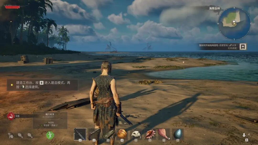 当玩家度过了前期的陆地生存阶段,后期解锁船只建造后,游戏的体验便会迎来质的飞跃。游戏的前期会提供玩家一条小船,方便在临近的岛屿穿梭,当完成主线任务后,便能获得第一条大型帆船,同时解锁船只改造系统。