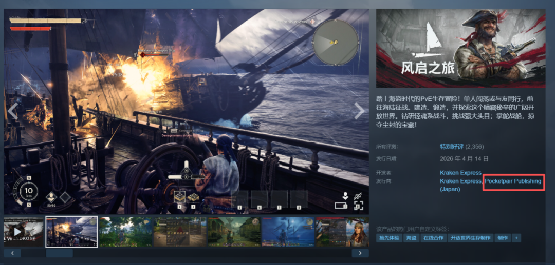 根据信息显示,这款游戏由一家来自乌兹别克斯坦的游戏团队Kraken Express开发,并由《幻兽帕鲁》团队 Pocketpair在日区发行。