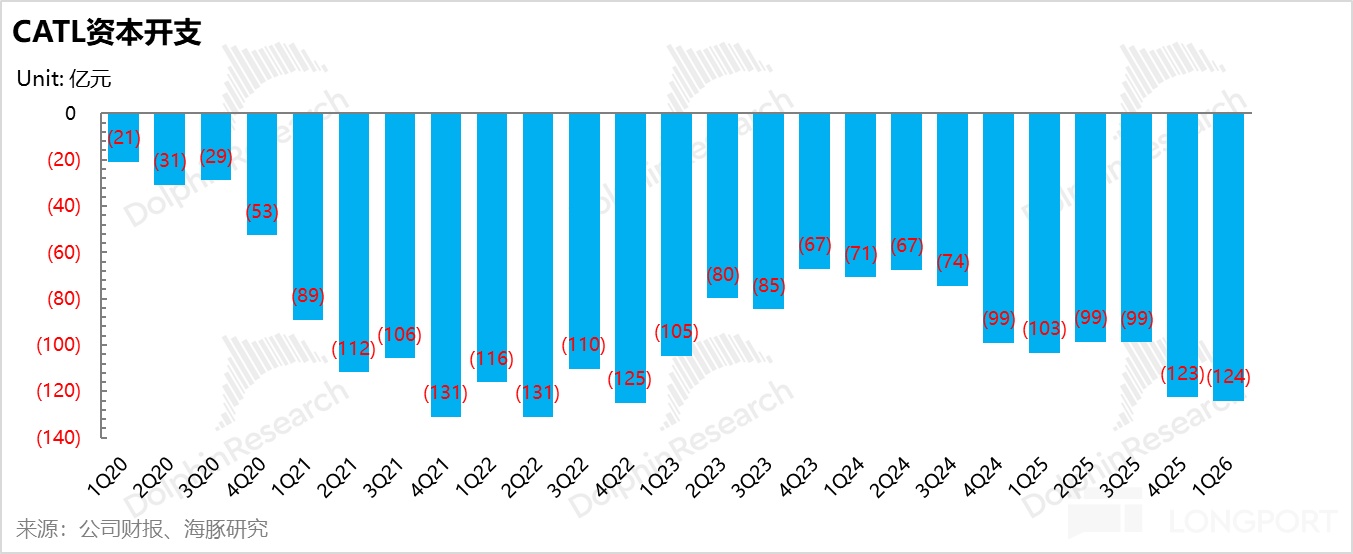 但自2024年Q1起,公司的资本支出已开始筑底回升。本季度,资本开支更是加速攀升至约124亿元,逼近上一轮扩产巅峰期的水平,释放出极强的扩张信号。