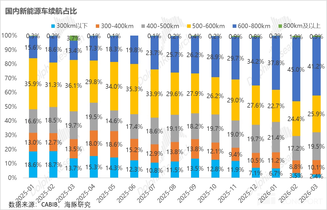 一季度国内600km续航以上的车型占比已达到40%-50%,大幅远高于去年一季度10%-20%的水平。这主要得益于: