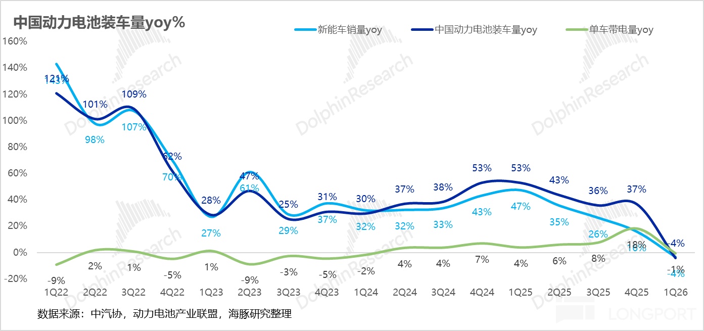 动力电池领跑行业,带电量“杠杆效应”爆发: 动力电池出货约 150GWh(同比+56%),远超国内新能源车销量增速(-4%)。这背后的核心逻辑在于“行业 Beta 升级”:乘用车标配长续航以及高带电量商用车渗透率跃升带来的 1:4 需求杠杆效应已全面兑现。