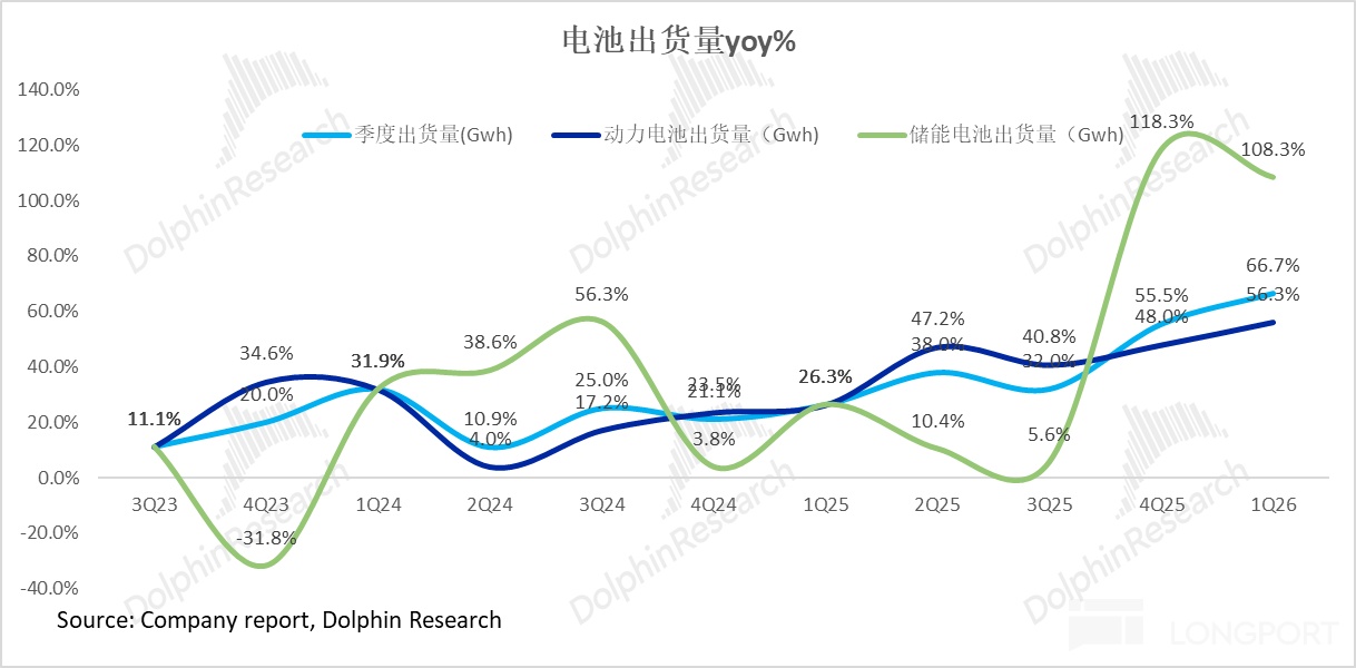 产能释放支撑交付:公司用于缓解储能产能压力的山东济宁基地(规划新增产能超100GWh)在2026年开始逐步释放产能,有力支撑了出货量的高增长。