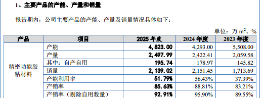需要注意的是,报告期内,公司精密功能胶粘材料产能利用率分别为37.39%、56.43%、51.79%,长期未能突破60%,产能闲置问题突出,在现有产能尚未充分释放的前提下,公司持续加码同类产品扩产,其合理性与必要性亟待解释。