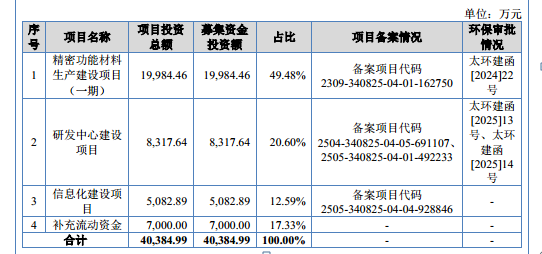 值得关注的是,富印新材此次IPO募资核心用于现有核心产品扩产,公司计划募集19984.46万元,占募资总额的49.48%,投向精密功能材料生产建设项目(一期),项目建成后,将新增1000万㎡/年的功能性泡棉胶带及双面胶系列产品产能。