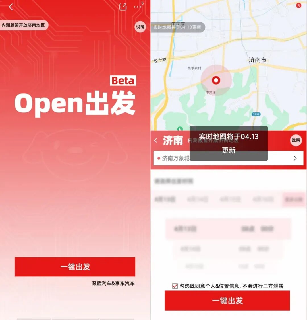 但京东瞄准的并不只有产品。被外界误以为是网约车平台的“Open出发”业务,是京东正在内测的试驾平台,用户可以自主选择试驾地点与时间,最长享受120分钟的试驾服务。