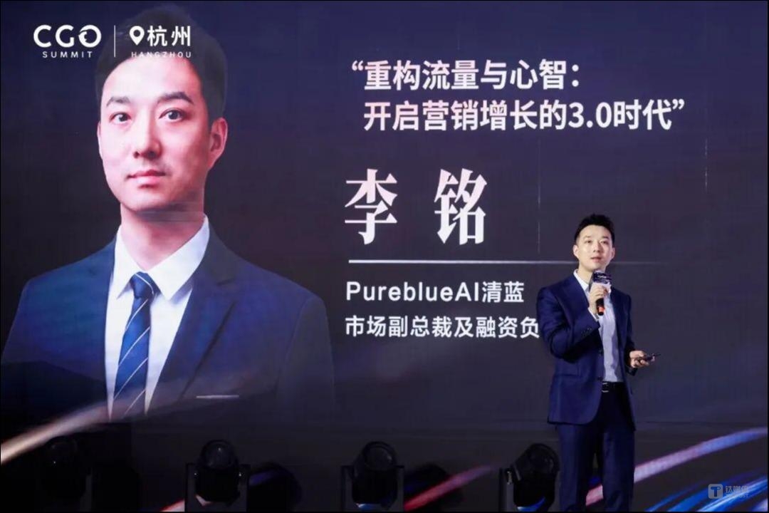 接下来,PureblueAI清蓝市场副总裁及融资负责人李铭带来《重构流量与心智:开启营销增长的3.0时代》的分享。