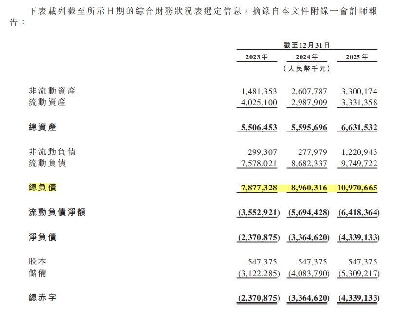 持续失血之下,财务压力自然越滚越大。截至2025年末,公司总负债已逼近110亿元,相比2024年末的89.6亿元,一年新增约20亿元负债。