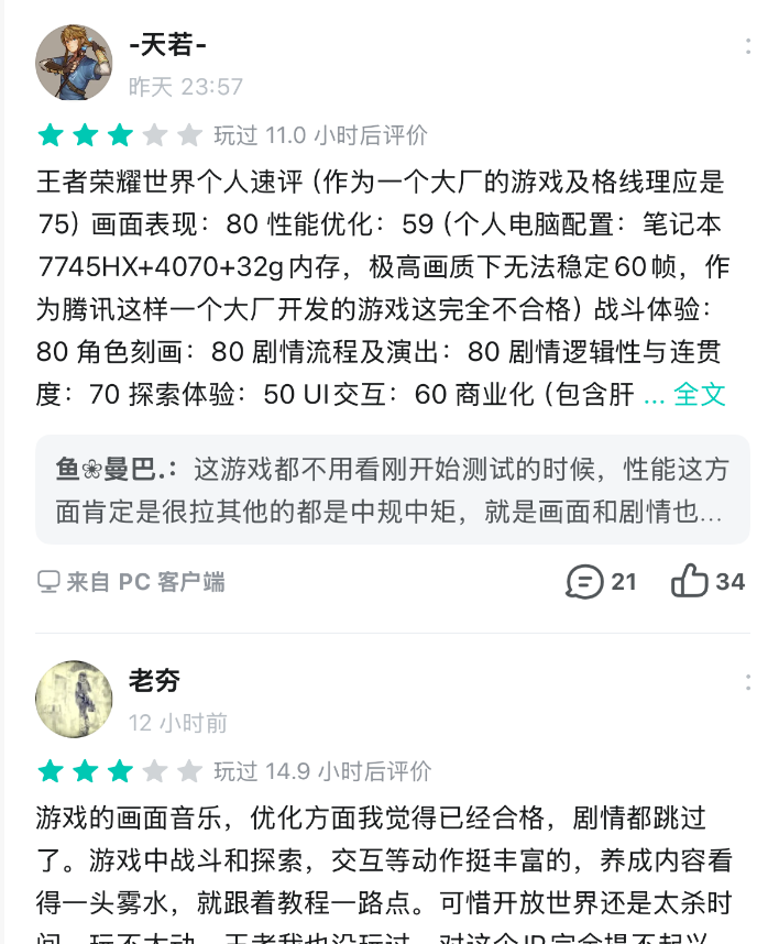 虽然开放世界作为现在游戏行业的主流赛道,依然有巨大的市场空间,但玩家的需求,早就从“有”变成了“优”。从“有无大世界”升级为“探索自由度、内容密度、动作手感、叙事深度、跨端优化”。还是那句话,《王者荣耀世界》的求稳选择导致在这些核心维度上没有自己的突破。