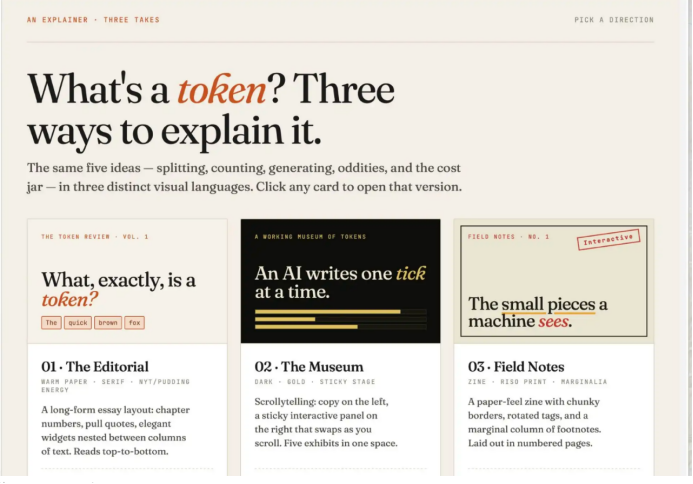 我采取了最基础的方式,从零开始,只提交了一个简单提示词:“我们来做一张面向普通用户、解释AI Token的交互图表。”
