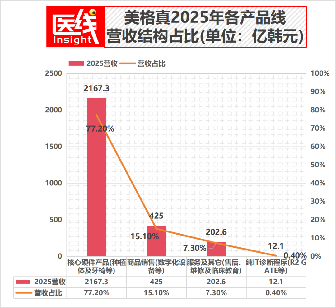 虽然财报显示,美格真纯粹的IT诊断程序营收仅为12亿韩元(占总营收0.4%),但这 0.4% 的“软件”,却驱动了包含种植体及牙椅在内占比达77.2%的核心硬件产品销售。