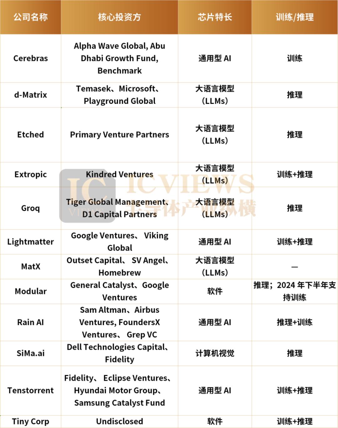 剩下的99家,是撑起赛道创新活力的初创公司。它们大多瞄准细分场景,专攻专用人工智能加速器,Tenstorrent、Cerebras、SambaNova、Groq、Esperanto 等玩家,曾凭借差异化技术路线收获不少关注。