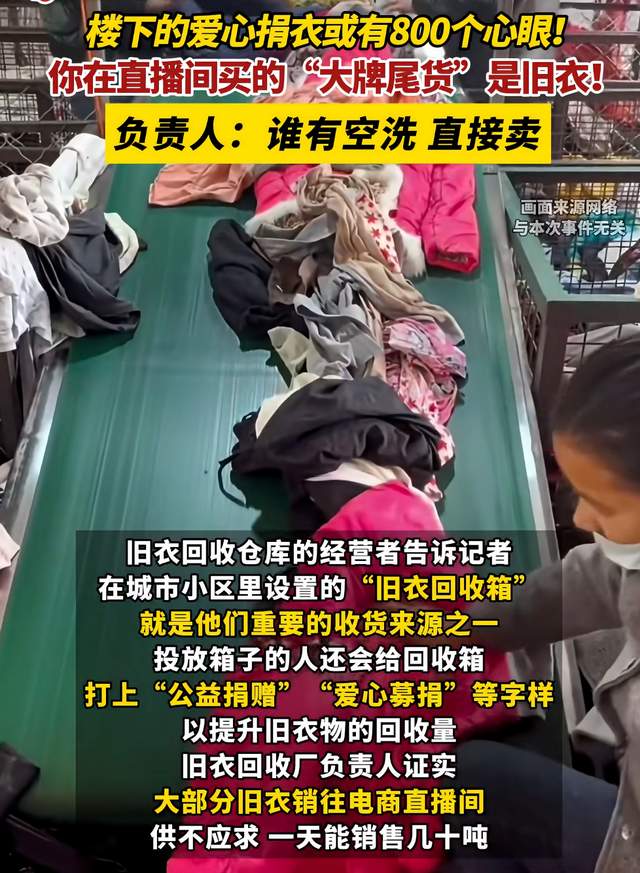 没人知道,这些从小区回收箱流出、未经清洗消毒的旧衣,下一秒会被包装成哪件 “专柜孤品”,流向哪一个直播间;没人清楚,这条藏在公益外衣下的旧衣黑链,每天还在悄悄吞吐多少吨 “货源”。