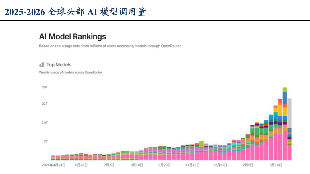 2026年元旦之后,全球头部模型Token调用量大幅上升,数据/OpenRouter,图/东吴证券