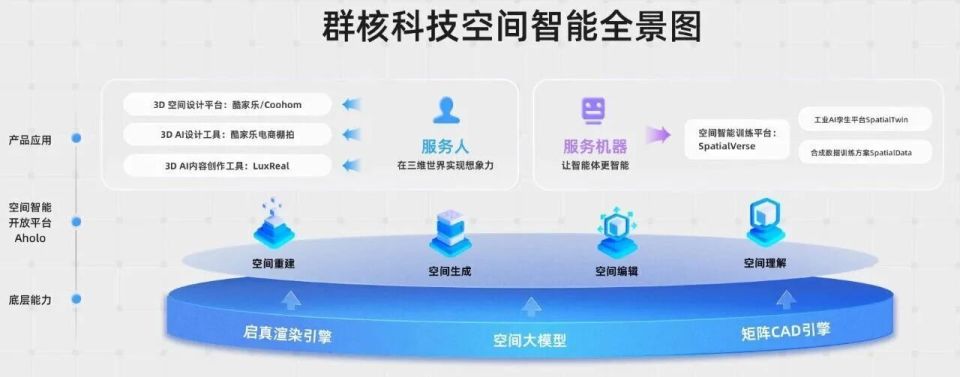 第三阶段(2022年至今):生态期。 公司品牌从“酷家乐”升级为“群核科技”,定位变成“空间智能服务商”,推出SpatialVerse空间大模型,业务开始往数字孪生、具身智能训练、电商虚拟场景这些方向延伸。