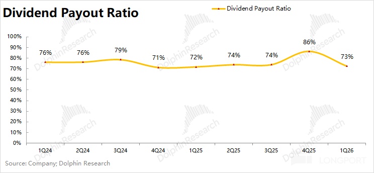 由于公司公布了预期分红情况,假定公司二季度分红 280 亿左右,那么公司当前的股息支付率(分红/税后现金性利润)在 73% 左右,也相对普通。