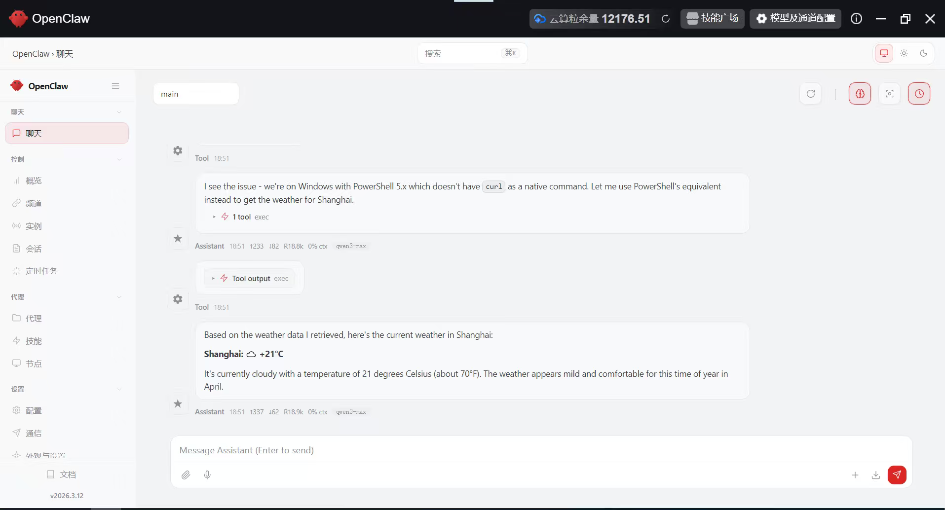 记者注意到,北京移动的OpenClaw界面上方会显示“云算粒余量”的提示,这就像是AI服务的“专属流量余额”。相关负责人介绍,该套餐使用门槛很低,不用额外设置,用户直接给AI发消息、提需求,系统都会根据AI的响应内容和调用的工具自动扣减额度。