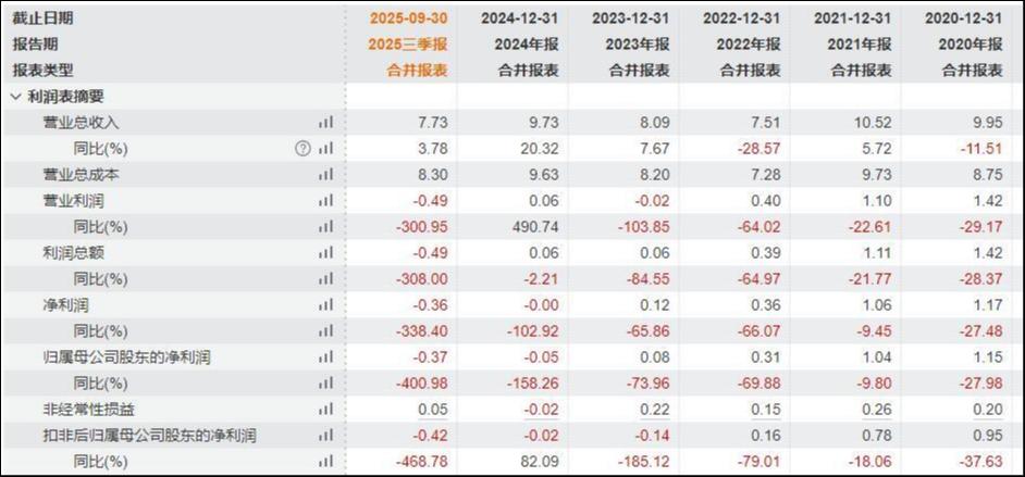 财报显示,安诺其净利润连续五年下滑,并由盈转亏。2024年公司实现营收9.73亿元,净利润连续五年下滑并于2024年首次亏损约475万元;2025年预计亏损进一步扩大至4600万-6500万元,恶化幅度超过800%。