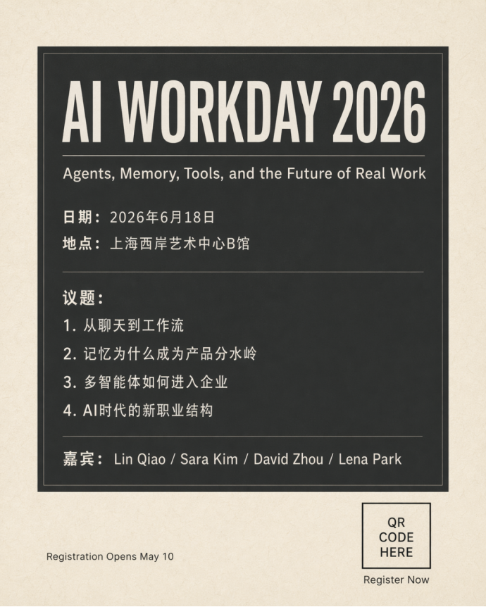 主标题:AI WORKDAY 2026副标题:Agents, Memory, Tools, and the Future of Real Work日期:2026年6月18日