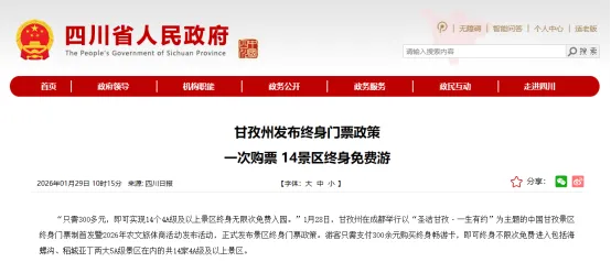 今年1月底,四川甘孜州首先推出了包含稻城亚丁在内的14个景区的终身门票制,就是在这种旅游趋势下提前布局,引导景区从单一门票经济向住宿餐饮等综合消费转型。