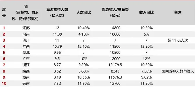 (2025年国内省区旅游市场接待人数Top10 数据图表来源:迈点研究院)