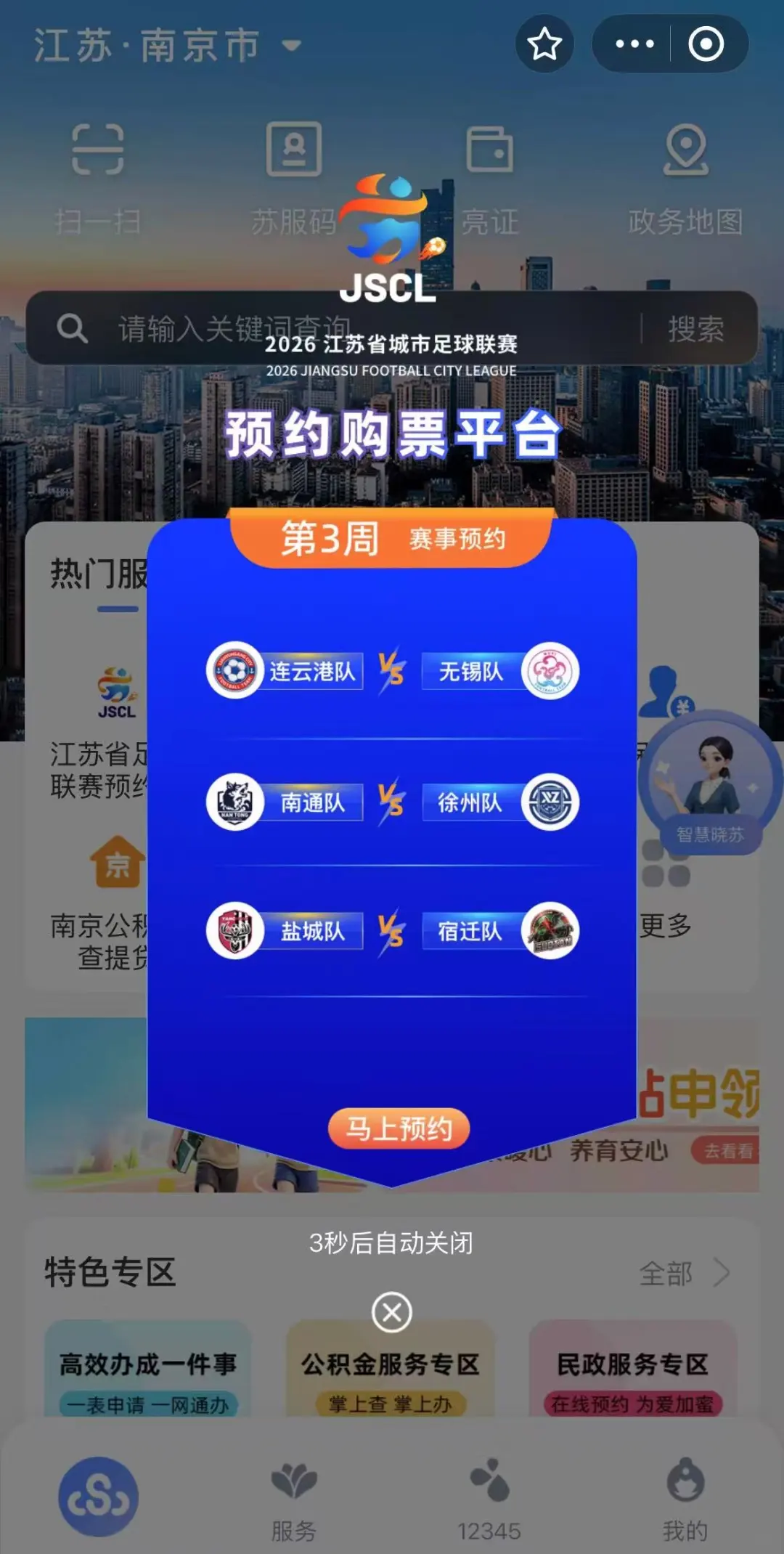 (“苏服办”小程序中的球票预约功能)