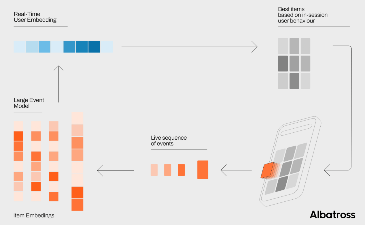 Albatross研发了用于商品实时推荐的AI模型,该模型通过分析用户操作的顺序和会话上下文,动态调整推荐与搜索体验,提供个性化实时导购服务。该模型无需描述性元数据,可直接从用户与商品的交互顺序中学习,基于用户感知而非标签来生成推荐。