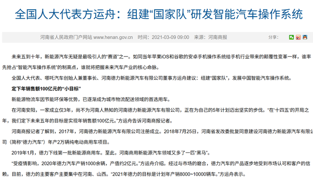 方运舟同样以其实控的上海哲奥实业有限公司,参与投资了德力新能源汽车有限公司。本人在2022年8月之前,方运舟更是该公司”的董事。同时也正在那时候,根据公开报道显示,代表德力新能源汽车有限公司,出现在河南当地公开场合中的正是方运舟。