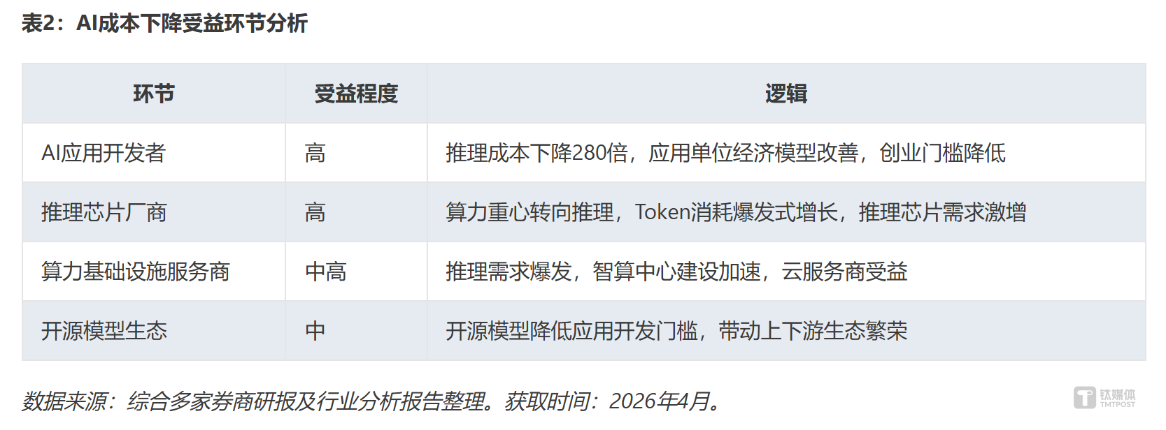 以“AI训练成本下降趋势及其对产业格局的影响”为主题,进行深度研究分析,输出结构化报告,要求覆盖成本驱动因素、数据支撑、产业格局影响,投资机会与风险、未来趋势判断,区分事实陈述和观点分析,对关键数据注明来源。