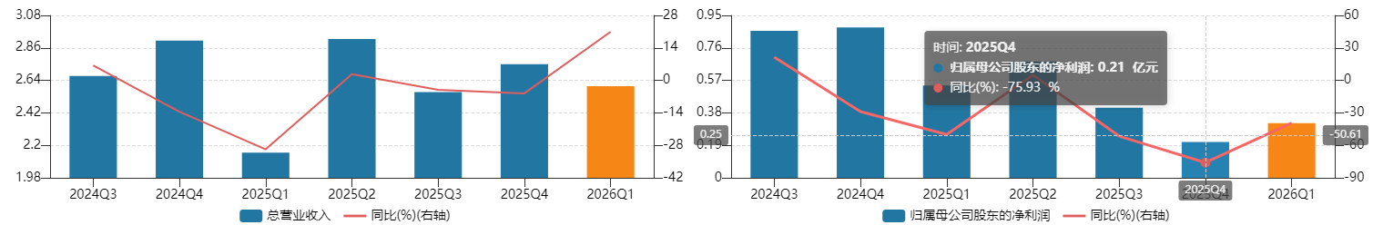 进入2026年一季度,公司业绩出现边际改善迹象,呈现弱企稳态势。