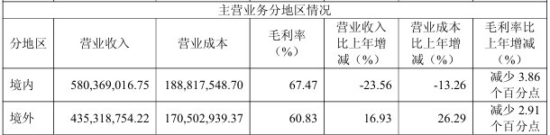 境内业务下滑,主要受体外诊断行业影响,国内三级医院检验科预算收紧、电化学发光市场竞争白热化、基层医疗放量不及预期,导致IVD设备与试剂收入同步下滑;治疗康复与医美业务,在国内同样面临复苏缓慢、机构拓店放缓、终端动销偏弱等现状。