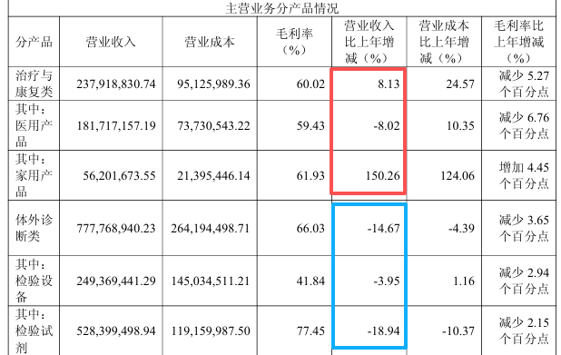 与体外诊断的收缩不同,治疗康复板块2025年收入2.38亿元,同比增长8.13%。其中医用设备受国内医院开支影响小幅下滑,但家用产品实现爆发式增长,全年家用产品收入5620.17万元,同比大增150.26%。