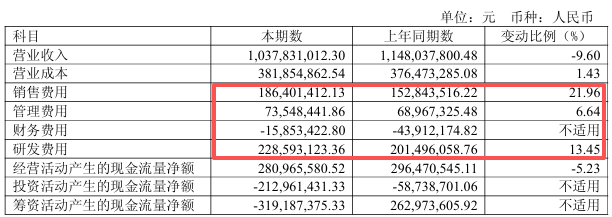 全年来看,公司实现营业收入10.38亿元,同比下降9.6%;归母净利润1.84亿元,同比大幅下降46.66%;扣非净利润1.63亿元,同比回落50.31%。营收小幅下滑的同时,利润近乎腰斩,反映出公司费用端刚性支出不减。