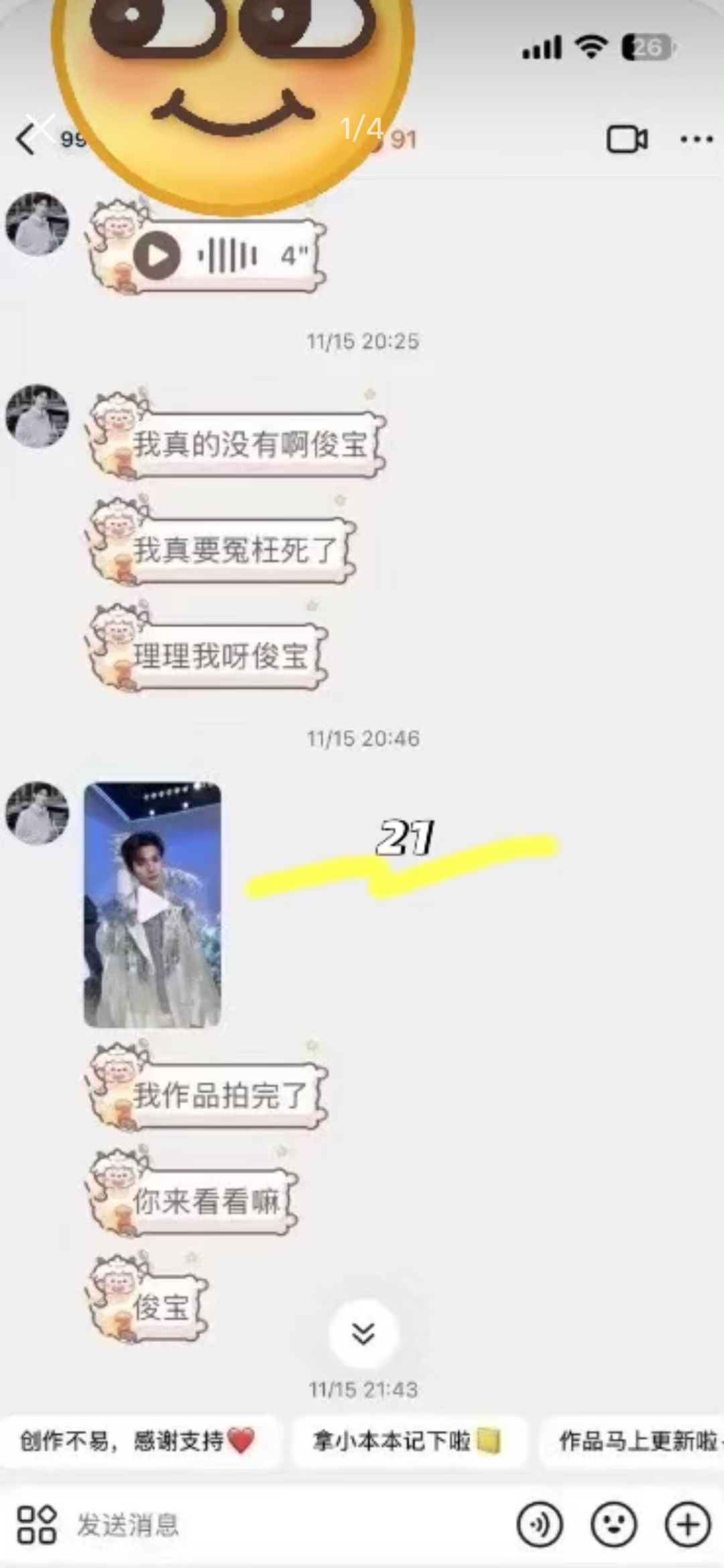 此外,主播会与大哥大姐保持公屏之外的联系,例如私聊,群聊时at等等方式。主播们会在每天不同的时间节点问候大哥大姐,亲密度高的,甚至能聊出火花(私聊频率高的标识)。