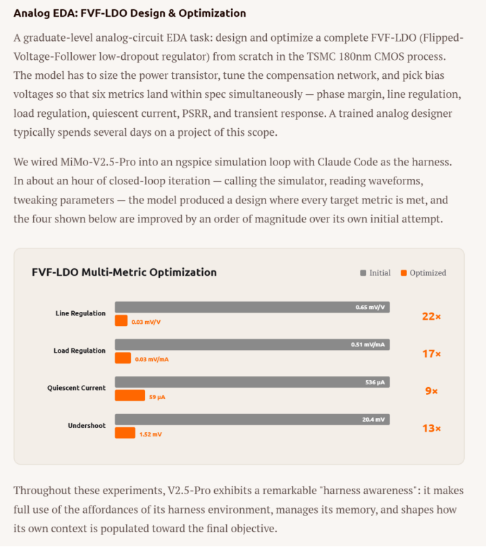 小米把MiMo-V2.5-Pro接入ngspice仿真循环,使用Claude Code作为harness。