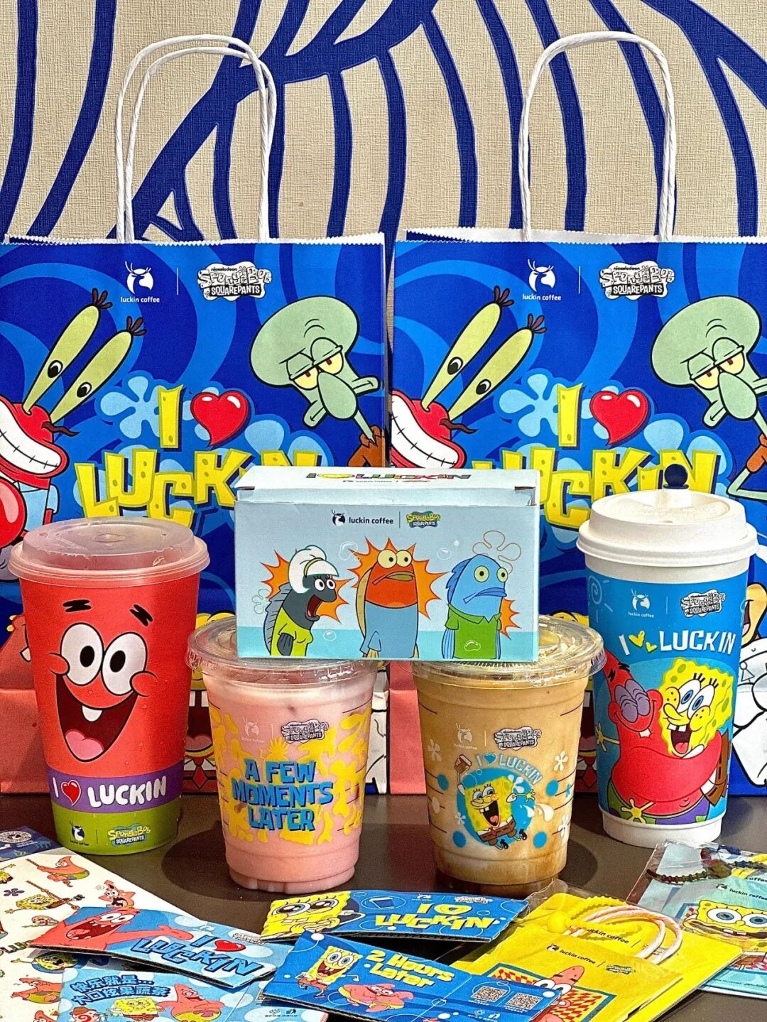 瑞幸咖啡X海绵宝宝联名周边。(图源:小红书@K门永存)