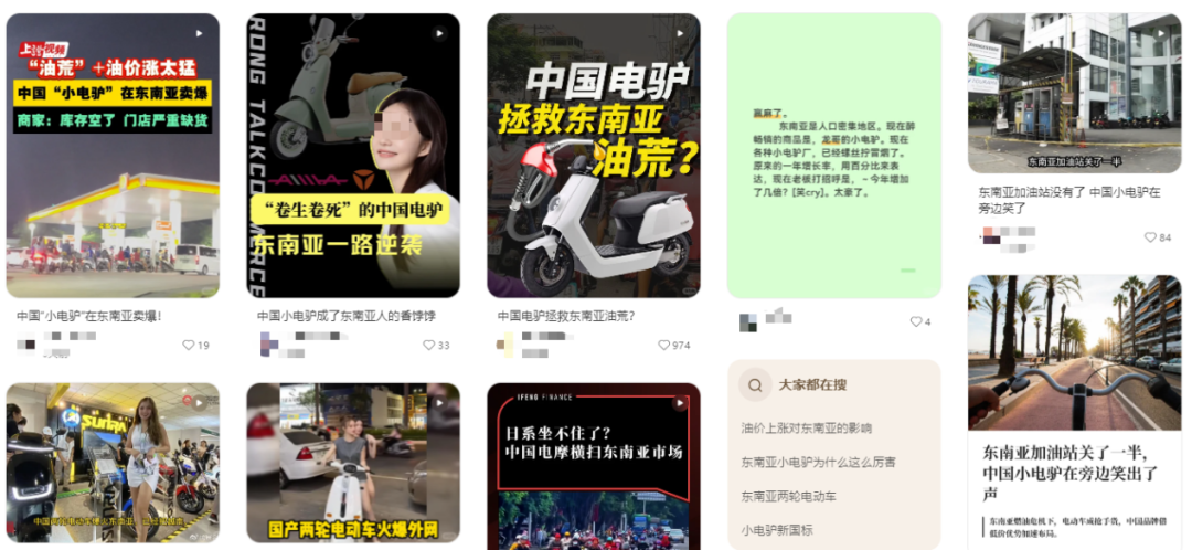 在东南亚,中国“小电驴”疯狂圈粉。因为“油荒”和油价暴涨,让老挝、泰国、越南、菲律宾等国家的消费者涌向中国电动车门店:欧派在老挝有50多家门店,1000多辆库存车,两周时间就售罄;泰国和菲律宾的雅迪、爱玛等品牌门店销量翻了好几倍;越南河内与胡志明市的雅迪门店客流量与订单量均大幅增长。