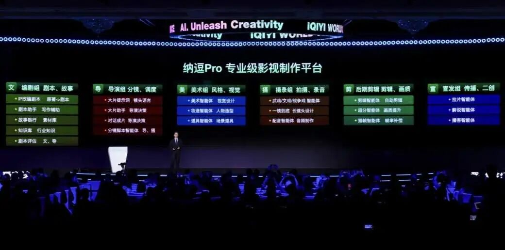 降本和提效,通常是内容平台拥抱AI的主要出发点。和丁磊类似,爱奇艺创始人、CEO龚宇也在反复强调AI之于平台的作用,无论是在电视剧制作产业大会、网络视听大会还是爱奇艺举办的年度大会上都是如此。在宣布转型为“非中心化的社交媒体”之外,爱奇艺对旗下影视制作平台纳豆Pro开放商用,并将IP库、艺人库、数字资产库纳入其中。