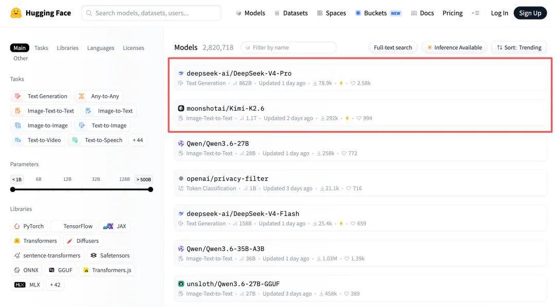 当天,DeepSeek-V4-Pro即登顶Hugging Face开源模型榜,两个“核弹级创新”被津津乐道: