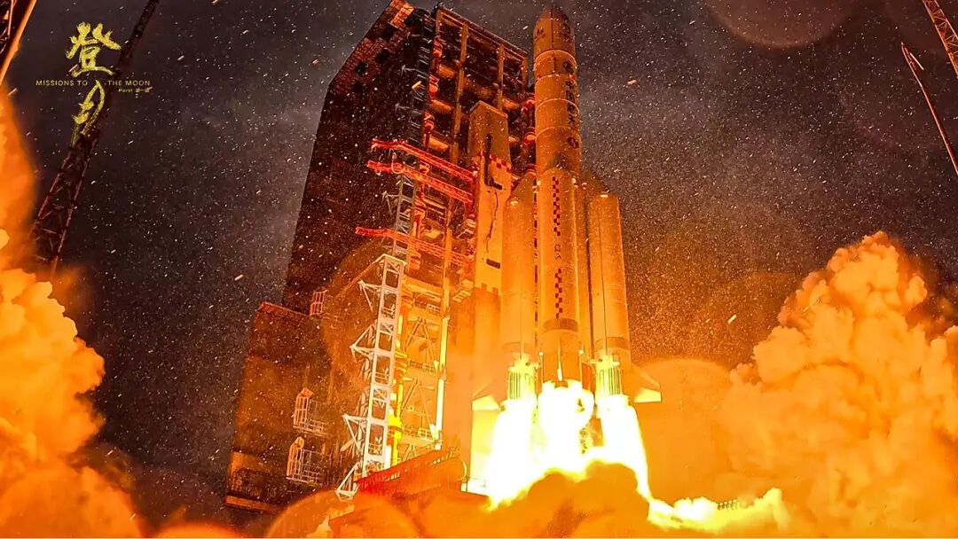 巨大的气浪把一台摄制组的相机掀翻了,在不断翻滚的画面中,嫦娥六号飞向月球。