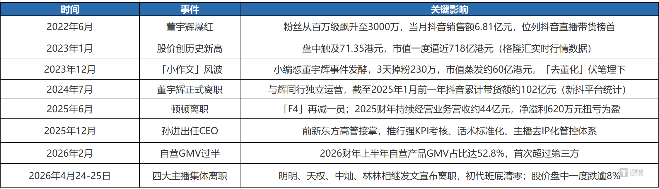 图1:东方甄选关键事件时间线(2022-2026)| 数据来源:公司公告、媒体公开报道