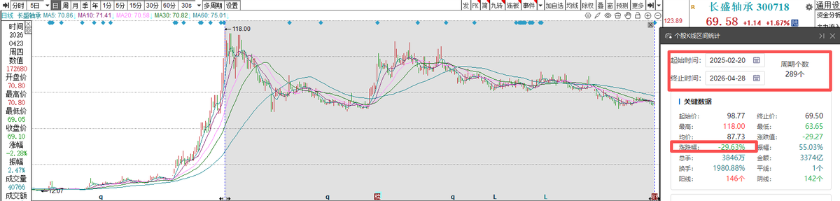 作为宇树机器人最核心的概念标的之一,长盛轴承(300718.SZ)自2025年2月高点至今一路震荡下探,从高点回落近30%。