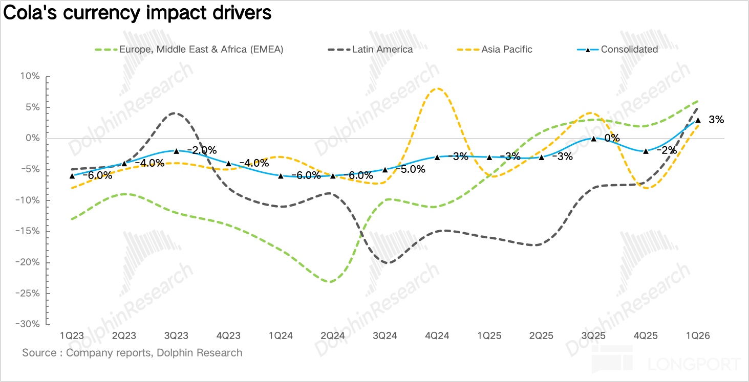 拉美地区:营收 16.8 亿美元,同比增长 14%,最值得关注的是墨西哥含糖饮料税(IEPS)的冲击:墨西哥 IEPS 税自 2026 年 1 月 1 日起从 1.65 比索/升提升至 3.08 比索/升,涨幅高达 87%,而且此前免税的零糖/无糖碳酸饮料也新增 1.5 比索/升,海豚君测算完全对冲税负大约需要 10% 左右提价。